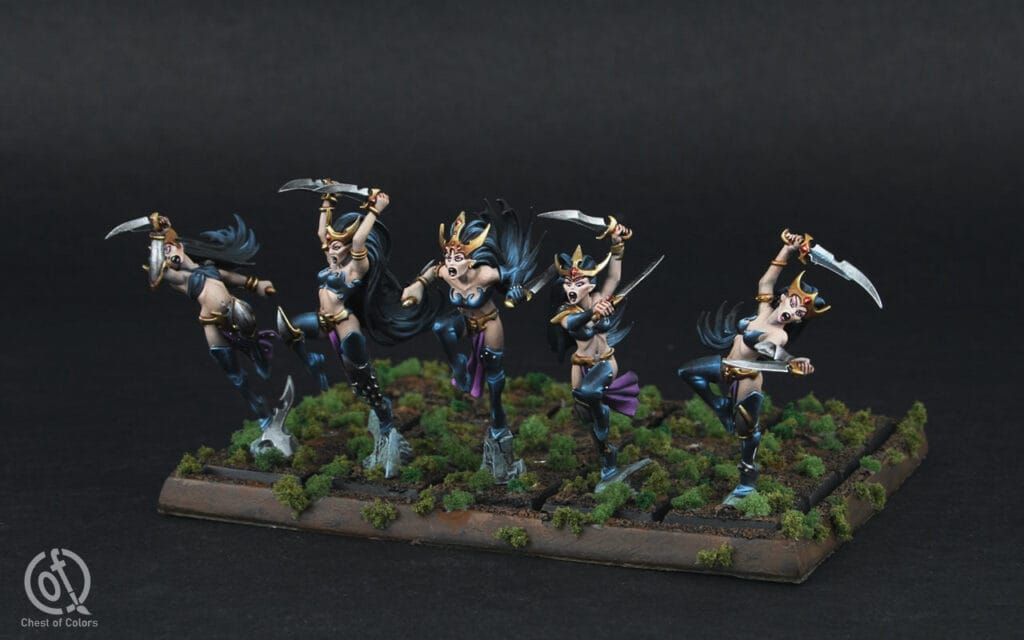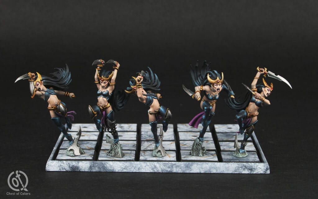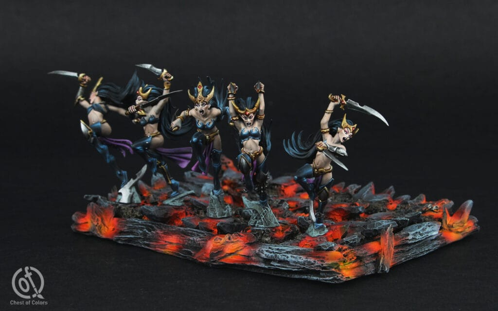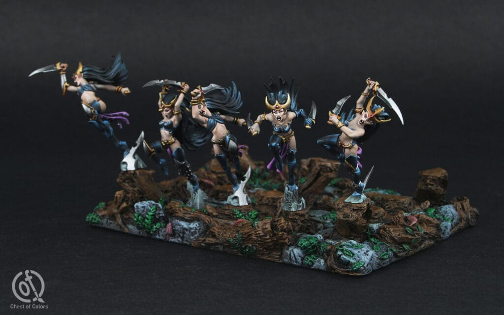 We thought it would be interesting to show what the various styles look like with the models. So we placed a few Witch Elves on each set of bases.