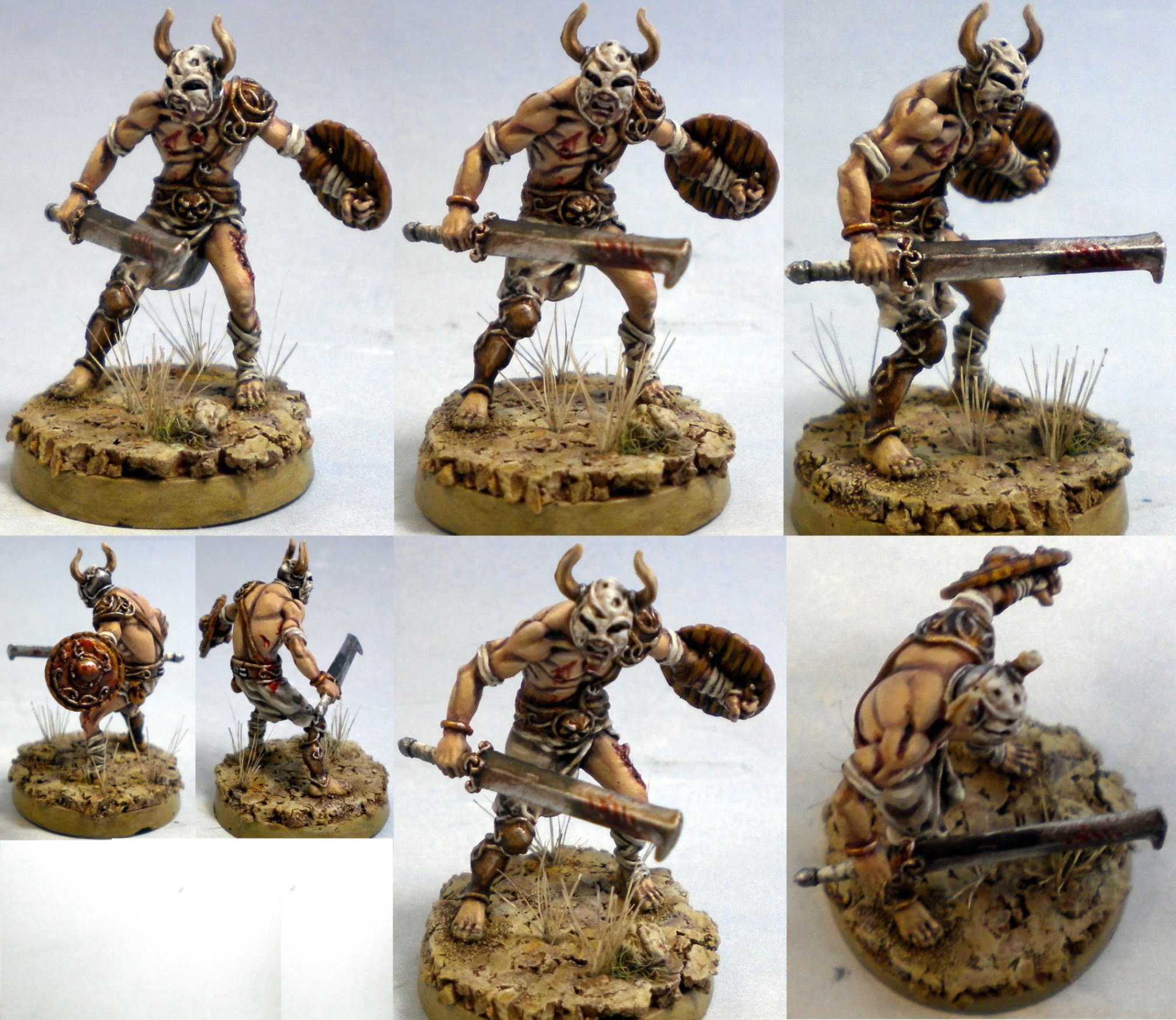 To make things easier for our readers, let me just remind you that the contest was all about painting fantasy gladiators. Or pit fighters. Or warriors. Call them what you want. We were pretty much relaxed about this definition, just like Two Hour Wargames were in their Red Sand Black Moon game of fantasy gladiatorial combat (which happened to be the main prize in the contest).