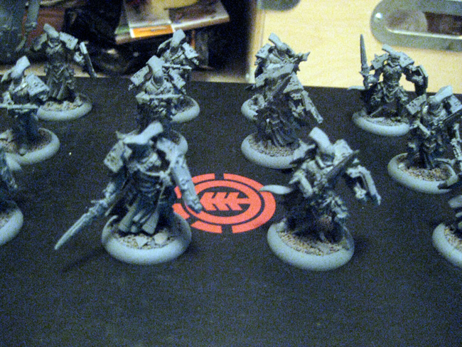 Starting off with a unit of 12 Exemplar Errants, primed and ready to go. Never painted on grey primed models before, so it will be an interesting experience. If you're wondering which primer I have chosen.....its the Krylon Grey Primer.