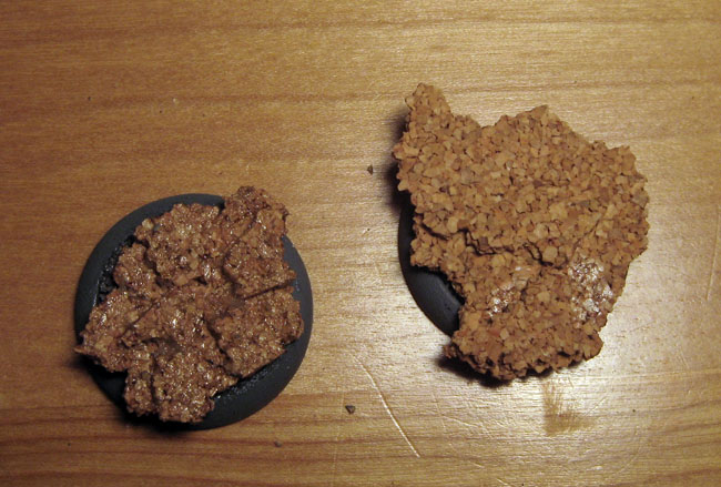 The bases will represent barren landscape, so I decided that cork shaped and mashed will do the trick.