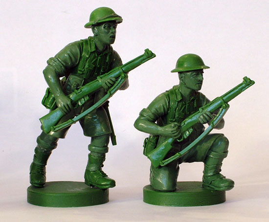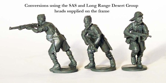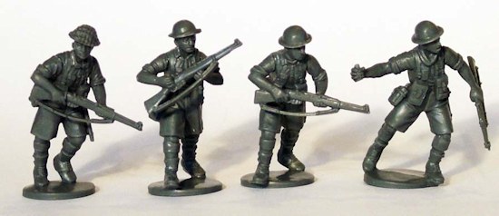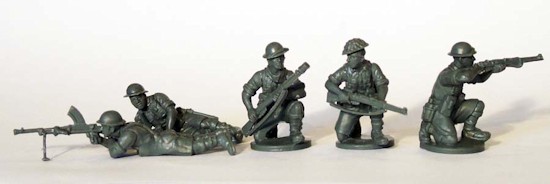Desert Rats 1940-43. 38 hard plastic multipose British or Commonwealth infantry for the desert war. There are enough to make a platoon of 3 sections plus an HQ section. Also included are 32x 20mm circular and 4x 40mm square bases (for the support teams).