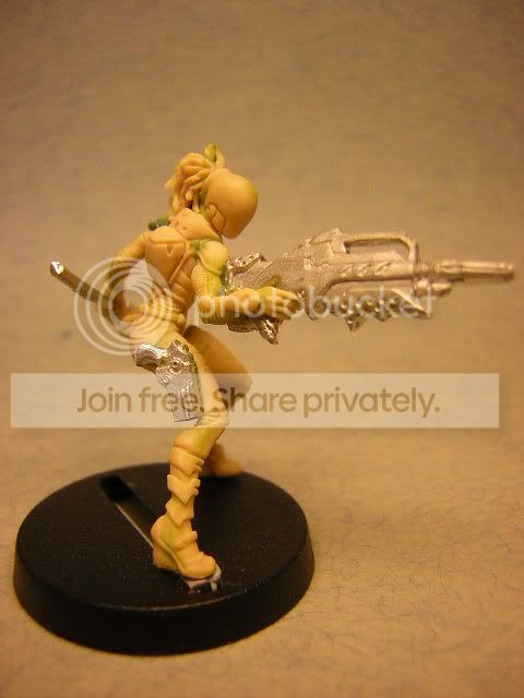 last one isnt a one hand weapon, you can tell by the "handle" on the front end and by the way she clenches it into her bizeps. also she's a rather slim/tiny sculpt, also angle is a bit missleading (gun in the front with macro ugh...) the one before her is a rocket launcher, i spose they have to be a tad bigger than other weapons xP