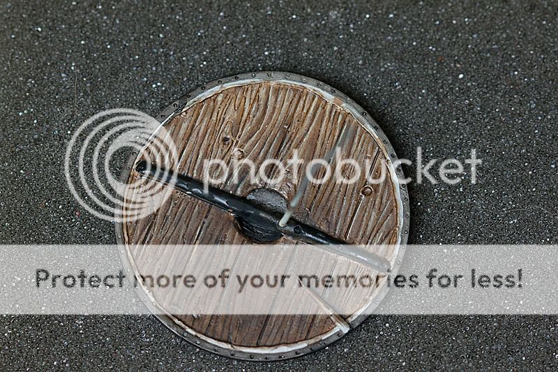 @Slawol: tak naprawde to tylko male kawalki tarczy beda wystawac z za plecow woja (tutaj linki do prac z cmona obrazujacych temat: viking1, viking2, wiec nie bede sie szarpac ze slojami na calosci. Poprawie jeszcze tylko kontrast na gorze i po bokach, a reszte, ktorej nie bedzie widac, przyciemnie.