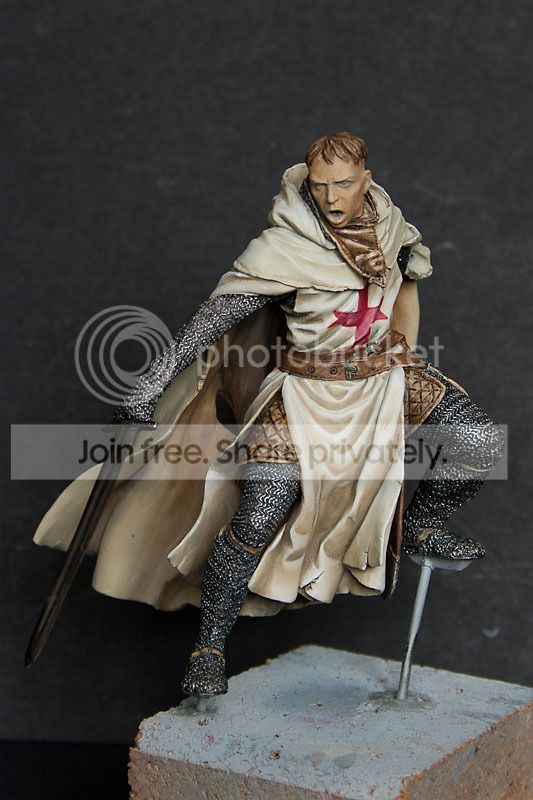 Udalo mi sie wreszczie wczoraj popracowac troche nad templarem (proza zycia znow wlazla mi w szkode) i ponizej macie efekty. Przykleilam mu lapke i pozalepialam wszystkie szpary miedzy konczynami plaszczem i kadlubkiem. Malarsko dlubalam tylko tunike i tak sobie mysle ze powoli zaczyna wygladac coraz lepiej.