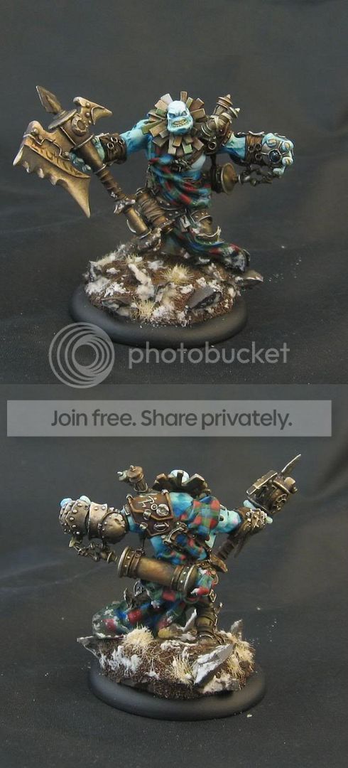 Podobnie, jak przy jędzy - niektóre kolory bym zmienił, ale Twoja wersja też ładnie wygląda. Podoba mi się sposób w ogóle, w jaki malujesz metal i postarzasz rury i kominy. Ni i worki i szmaty wyglądają bardzo naturalnie. Obicia na pancerzu również. I znów mi tutaj ten glut nie do końca pasuje w prawej łapie, choć rozciągnięty między palcami prezentuje się lepiej, niż u wilka wyżej