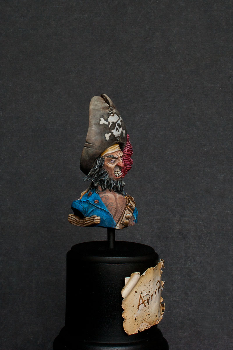 Kurtka pasuje teraz do całości, ale granatowa nie jest. Na pewno jest ciemniejsza, niż była, ale wciąż nie jest zbliżona do tej na wampirze. Nos mi się akurat podoba, a jeśli Ci za czerwono, to zmieszaj sobie z kolorem skóry albo rób glaze i wtedy zabarwisz skórę na czerwono, zamiast zamalowywać