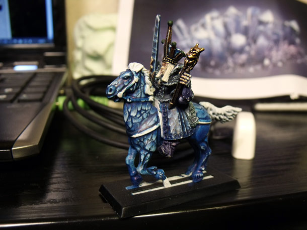 Zajawiłem się okropnie na Ańowe kryształki... wygrzebałem z szuflady Kislevską królową lodu.. Nie jest to jeszcze ten efekt który chcę osiągnąć, hm, taki szkic jakby jeszcze... :roll: