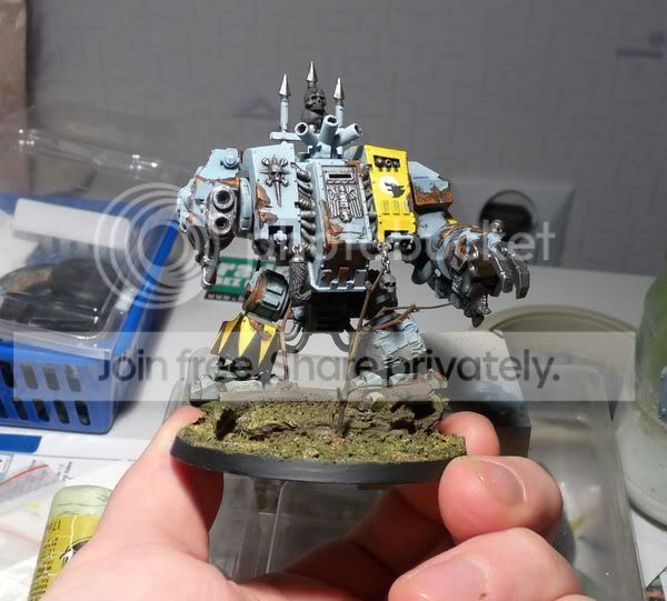 mahon wrote:I'd apply more dirt (rather dust than mud) over the dreadnought. If it's depicted during a fight, it surely is not clean and has collected some dust from explosions and other battlefield conditions.