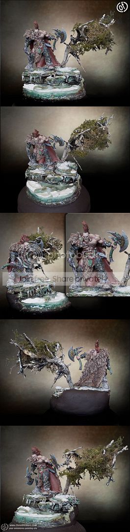 I like everything about the mini except the eyes. Not sure what it is, but the eyes to me, are not up to the standard of the rest of the mini and the base. I really like the way you captured the snow and ice in the waterway effect.