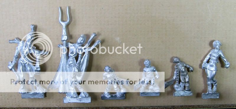 Stever Buddle of Eolith Miniatures wrote:Righty, since talking about the potential for new zO figures, I've been asked for pictures of the old ones so people can see. Now, I don't have any particularly good pics to hand (though check EricJ on coolmini for an awesome Munchkin paintjob for one). I have taken this slightly dodgy shot of all six figs. I'll get some better pics done soon.