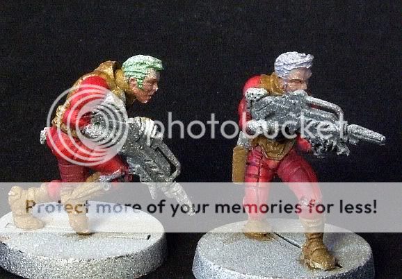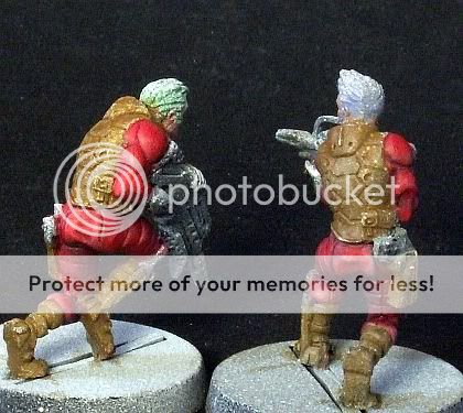 Bardzo podoba mi sie "plastycznosc" twoich figsow, szczegolnie na pani z dwoma mieczami i zielonych elementach (kolor zielony mocno mnie nie kocha, niestety z wzajemnoscia;p wiec tego Ci zazdroszcze:D). Troche gorzej niestety wyglada starannosc malowania.