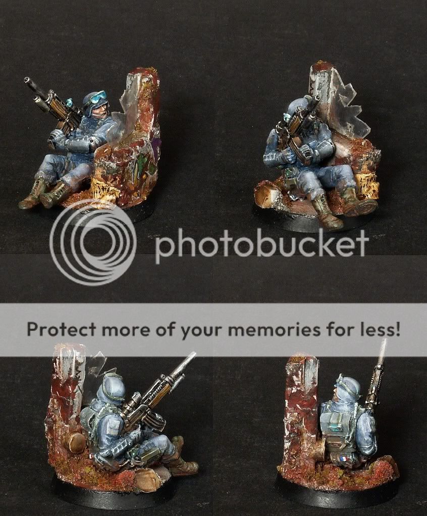 ten z karabinem w dół dostał szarym pod 45 stopni i pionowo białym a kolega obok tylko białym