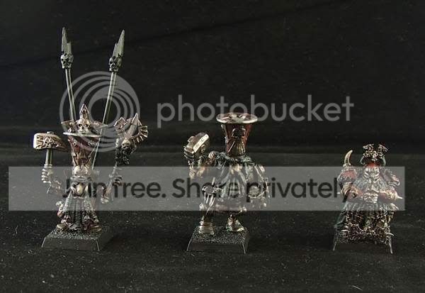Malowanie proste, ciemne dość, ale wyraźnie wyszło, kilka warstw, szybkie malowanie (termin), no ale sama robota z przygotowaniem/kąpaniem/klejeniem/czyszczeniem modeli zajmuje sporo czasu, a metale jednak muszą się chwilę pokąpać w rozpuszczalniku... Bywają dni, że siedzę cały dzień, a bywa tak, że nawet nie chce mi się pędzla do ręki brać, a nie samym malowaniem człowiek żyje przecież. A o patrzeniu na to wszystko to już nawet nie wspominam - inaczej się oczywiście patrzy, jak jest po robocie