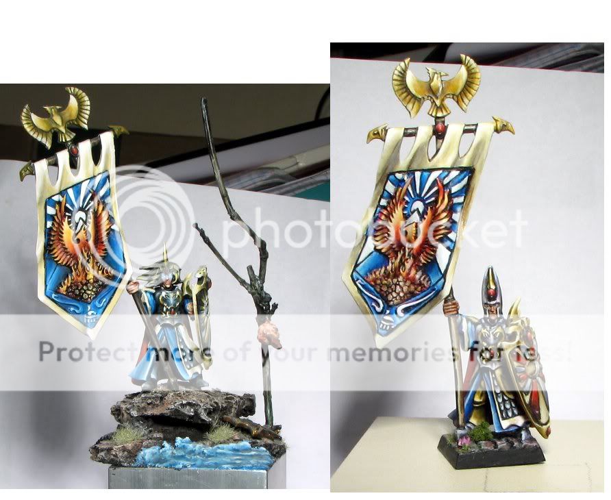Na pewno nie pasteluj płaszcza, obawiam się ,że było by gorzej niż teraz, a teraz źle nie jest, trzeba tylko dobrze zdjęcie zrobić. Do tego zrób coś koniecznie z tym cieniem na sztandarze padającym od drzewca, teraz wygląda to bardzo dziwnie, jakby ów drzewiec właśnie wypalał dziurę w materiale, zdecydowanie lepiej będzie jeżeli zrobisz cień tylko trochę ciemniejszy od tego na pozostałej części sztandaru. No i oczy.... podpisuję się pod Mahoniem w ich kwestii