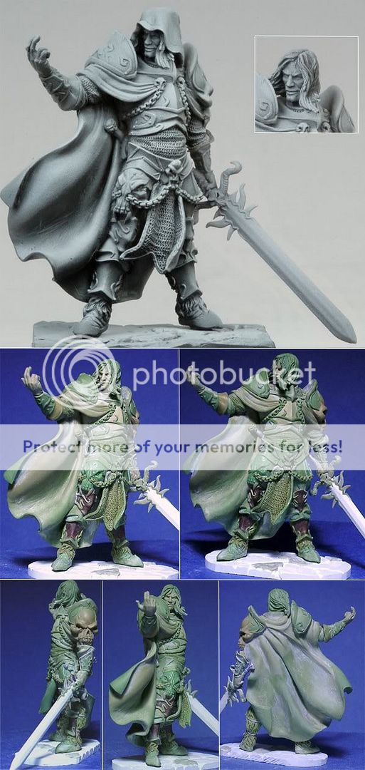 The size is 54mm, and it's made of epoxy Milliput, Brown Stuff, and Green Stuff. The figure will be available in September.