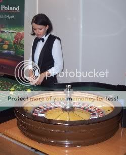 Click to see full-sized imageW bocznej sali można było również skorzystać z uciech gry w ruletkę ( po lewej). Ja i ogromny model Sokoła Millenium (z prawej)