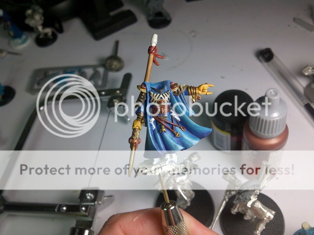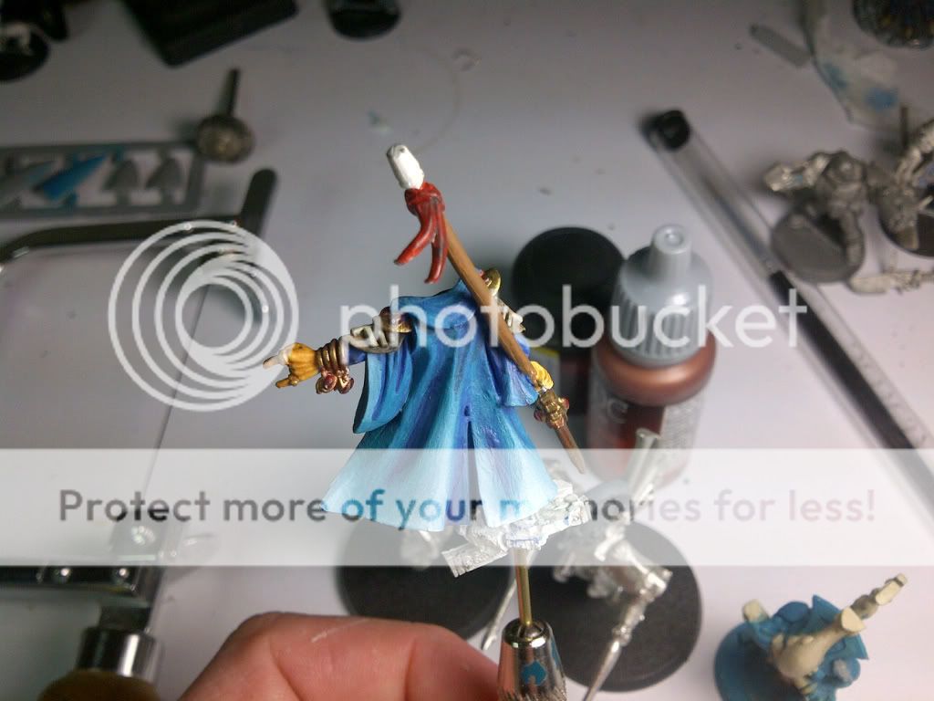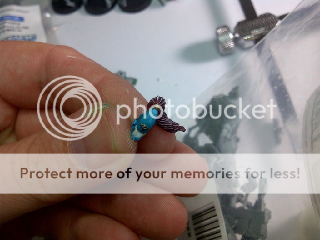 Good call on the blacklining, never done it much but I can see what you mean by a good separation. The metal I was thinking Blue/Purple washes layered until I get the color effect I am looking for (mainly on the weapon blade).