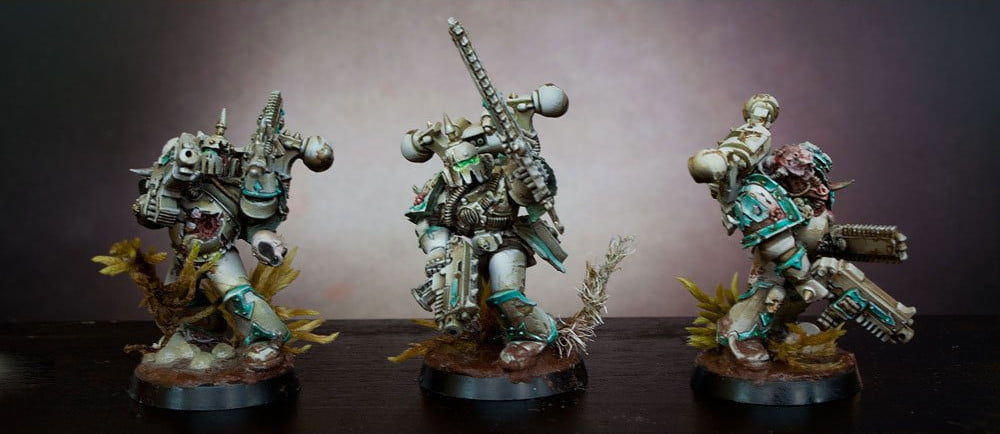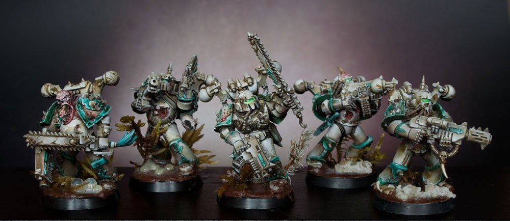 Deathguard Plague Marines Command Squad, still in pre-heresy colors