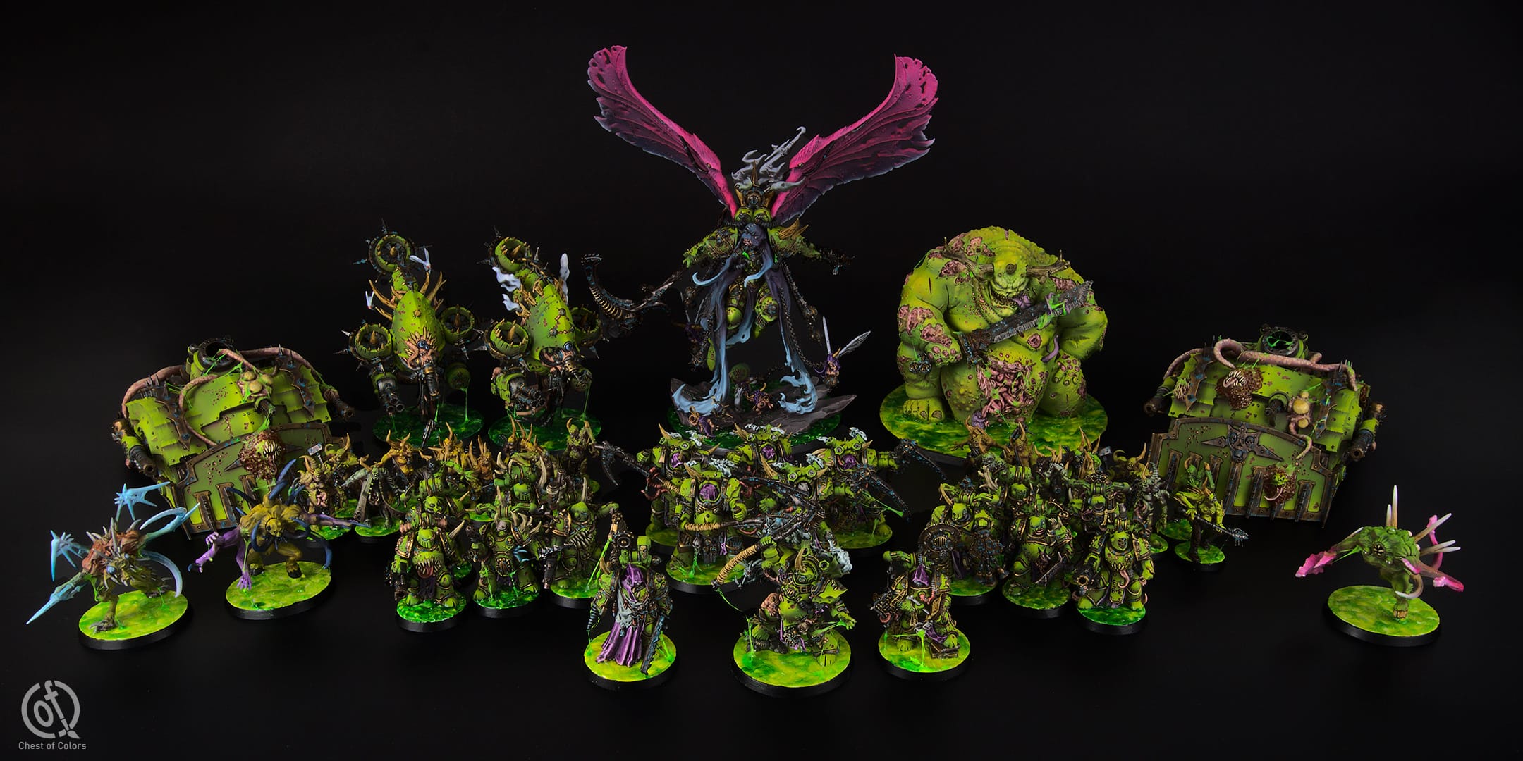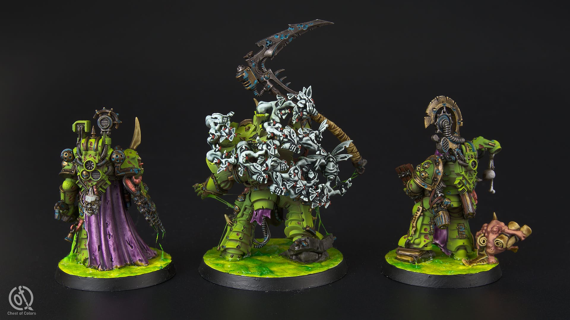 Death Guard army: Nauseous Rotbone, Typhus and Scribbus Wretch