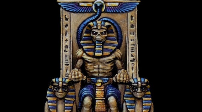 Based on the “Powerslave” album cover, this miniature channels ancient Egyptian imagery.