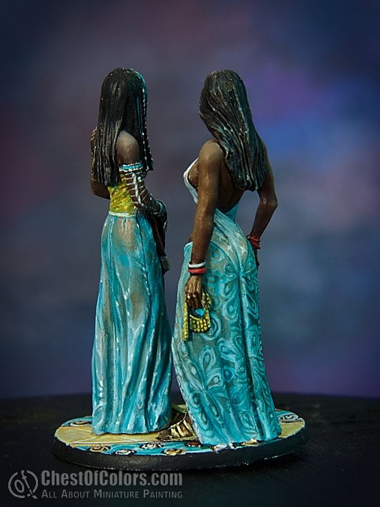 These two miniatures are Irri and Jhiqui, characters from George R.R. Martin’s “A Song of Ice and Fire” saga. Obviously my paintjobs are not representations of these characters.