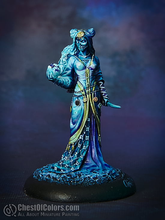 You may know Urania as a muse. The patron of astronomy according to ancient Greek mythology. And this was the way she was depicted as a miniature from Dark Sword Miniatures.