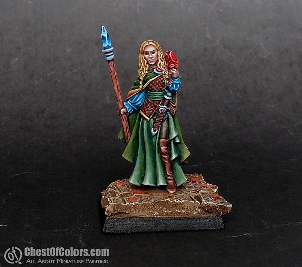 Here is Myrianna of Aelfheim from Red Box Games – painted in rather classic color scheme for an elf.