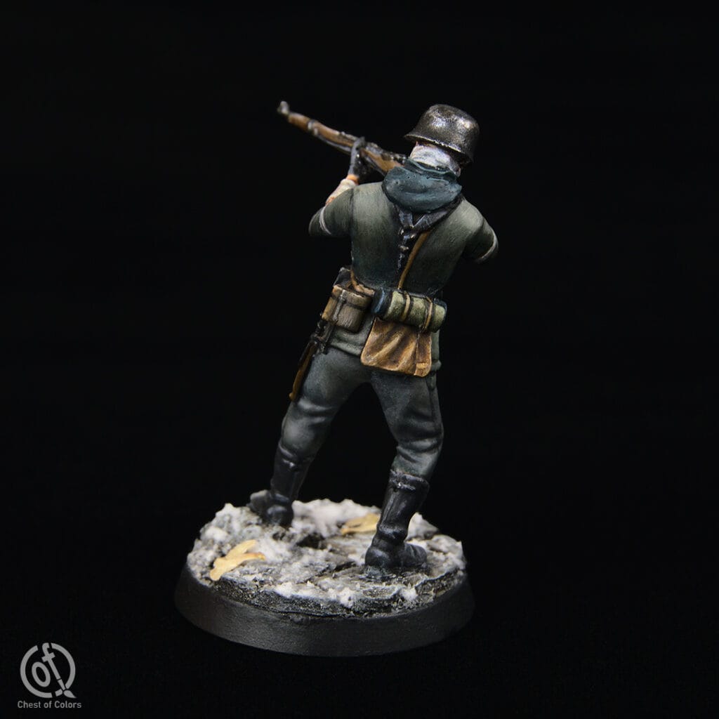 Painting shouldn’t be difficult for anyone. One just need to get some pics and start painting. Colours true for that period are well known and you can find any required information in the internet. Of course, if you want to get deeper, you can get many books covering this subject, e.g. from the Osprey publications. Use green and olive shades for uniforms, with some tiger-stripes camouflage patterns, and Marlboro, Winston or Lucky Strike cigarette and you’re free to go;) I think you know how to paint ammo boxes too. Pastels and dry pigments might be useful to recreate dark ground and dust.