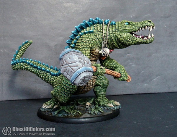 I continue to paint reptiles from Mierce Miniatures with surplus body parts. After painting three headed hydra it’s time for 4 armed lizard – Pétroyos, Lískarchon. He is related to basilisks and have ability to petrify opponents – that is why I painted his eyes red. Besides, I love his evil reptile smile 😉
