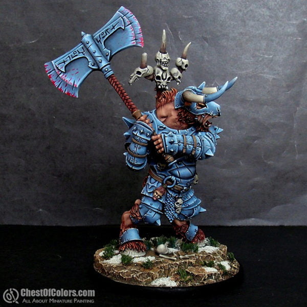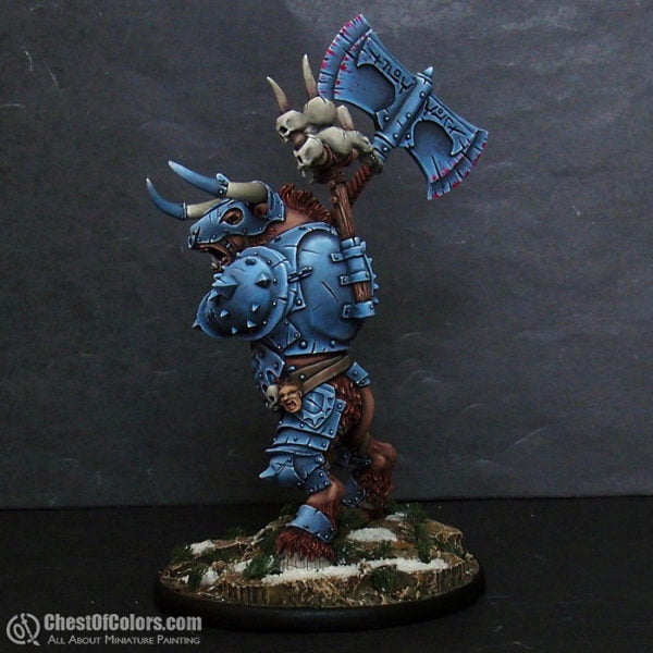 Here is Ckaarakk accompanied by my other miniatures from Formoraic fraction of Darklands world. You can see that he is quite big, even for minotaur.