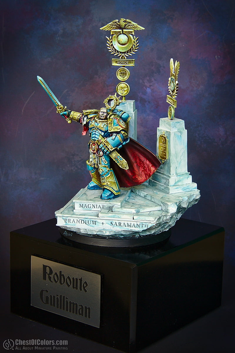 The model was very enjoyable to paint thanks to good quality of the sculpt and casting. This tends to be my usual experience with Forge World models anyway. It is not the most impressive or memorable of all primarch models, but still I wanted to give him a very commanding presence, and some individual personality while not straying too far from the original Ultramarines imagery.