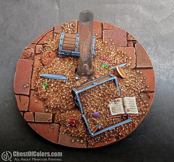 Nothing big but I just finished quite large base full of treasures. A goal for many adventurers that dare to enter mysterious dungeon. As with all the bases, there is always some compromise between details and time spent on painting. I tried not to paint every single gold coin separately and yet to make it look detailed enough. I hope that I achieved that.