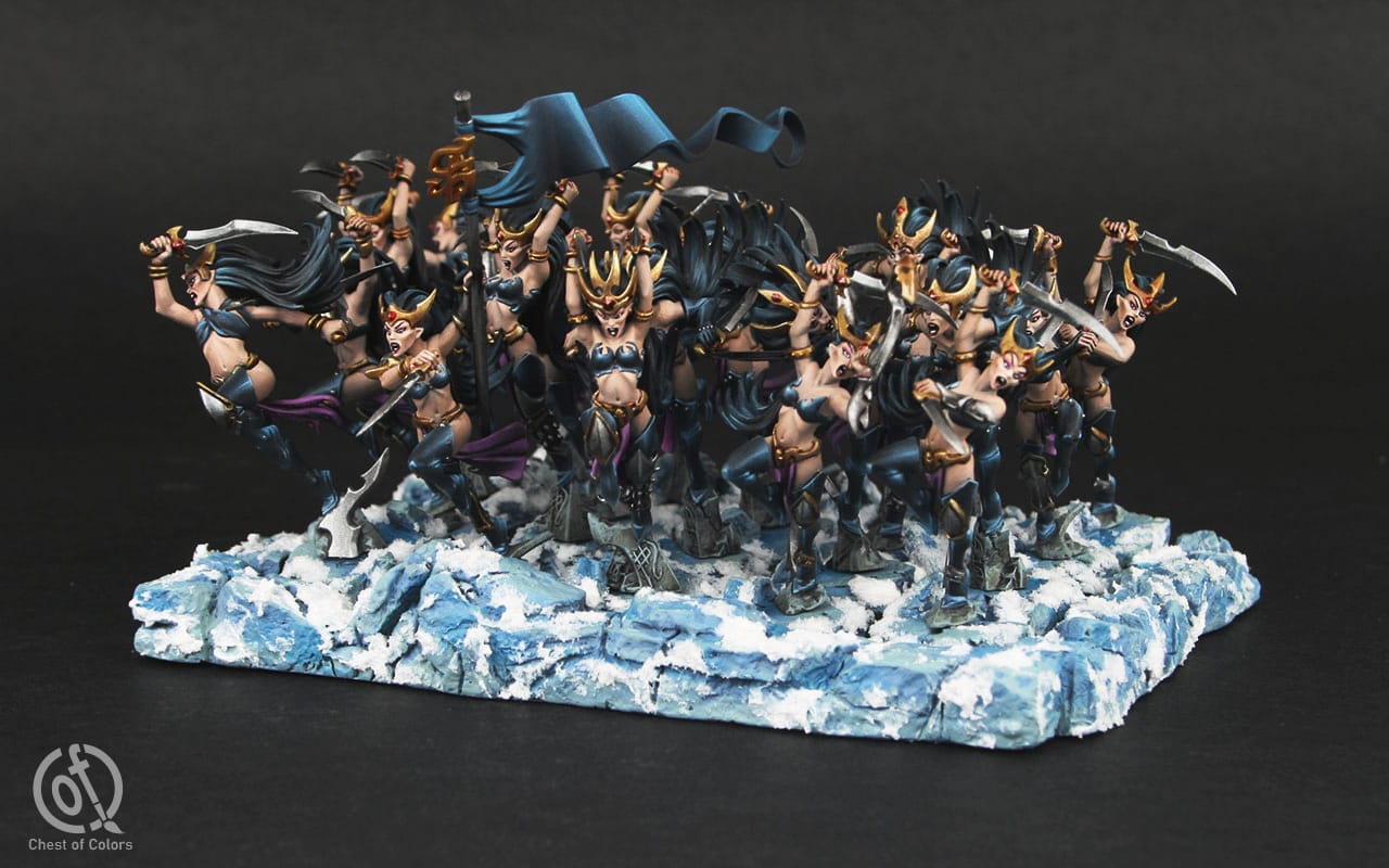 On this photo you can see the whole unit of Witch Elves with a movement tray and winter bases. But check the next photo, just below this one.