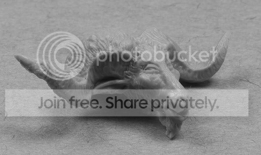 Najgorzej sprawa wygląda z tym kawałkiem żywicy przy lewej ręce, widziałam foty tej części odlewu i tego nie było (link) no i rogi...